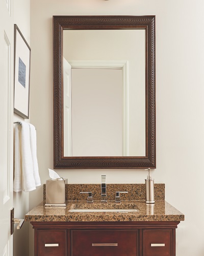 Pick a frame that matches your existing décor, such as your vanity, lighting, or hardware finishes.